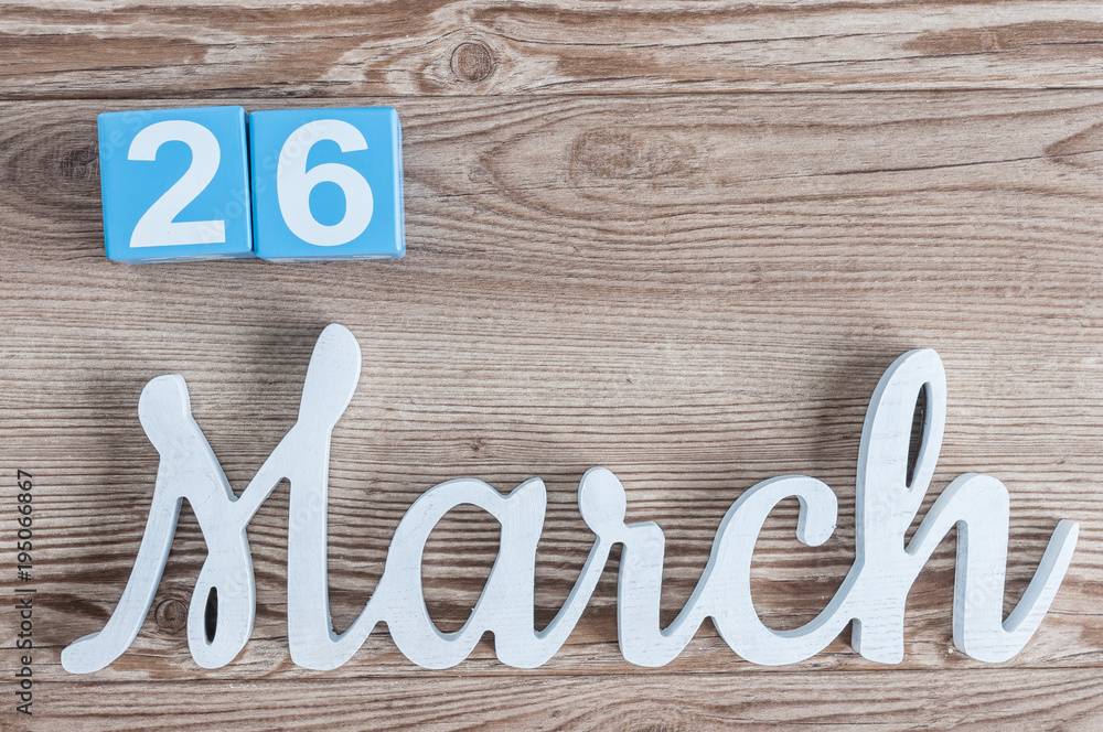 March 26th. Day 26 of march month, daily calendar on wooden table